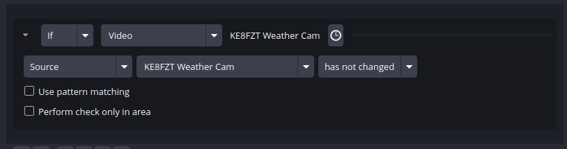 Next, Launch Advanced Scene Switcher from the Tools menu in OBS. Click the + to create a new macro. The screenshot below is set up to detect when the stream has frozen. In the “define macro conditions” area, set up the conditions like the screenshot below: